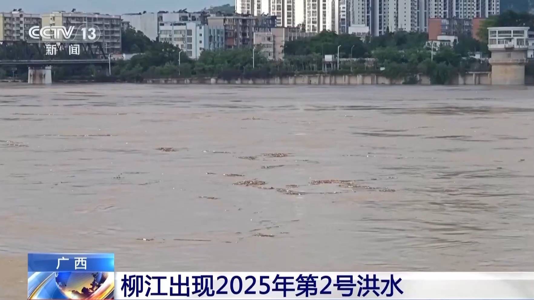 受上游来水及降雨影响,都柳江、融江、柳江、龙江等江河出现1至8米的涨水过程,其中,柳江柳州水文站于25日0点13分出现柳江今年第2号洪水。(央视新闻客户端)